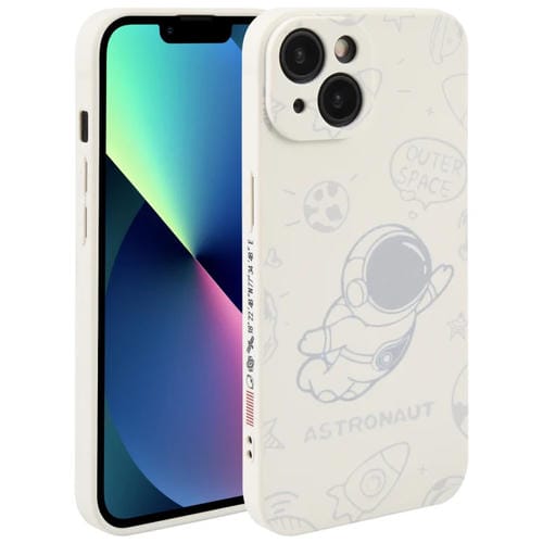 Funda de teléfono para iPhone 13 Patrón de Astronauta borde recto de silicona (Blanco)