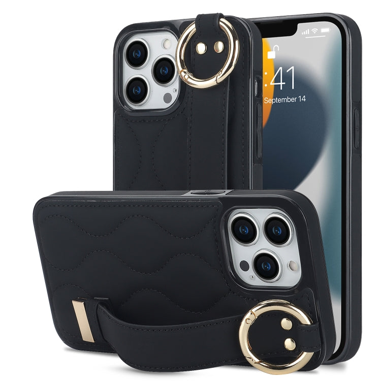 Funda para iPhone 13 Pro Antideslizante de PU con Anillo y Muñequera (Negro)