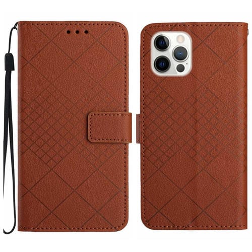 Funda de Cuero para iPhone 13 Pro con Textura de Rejilla Rómbica (Marrón)