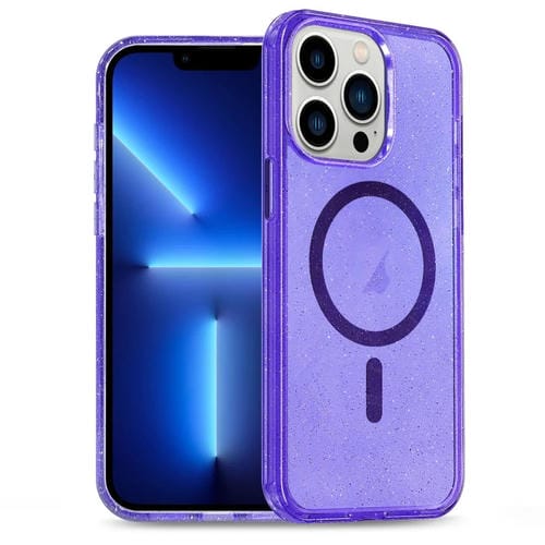 Funda de Teléfono iPhone 13 Pro Glitter Powder TPU PC Híbrido Magsafe (Púrpura)