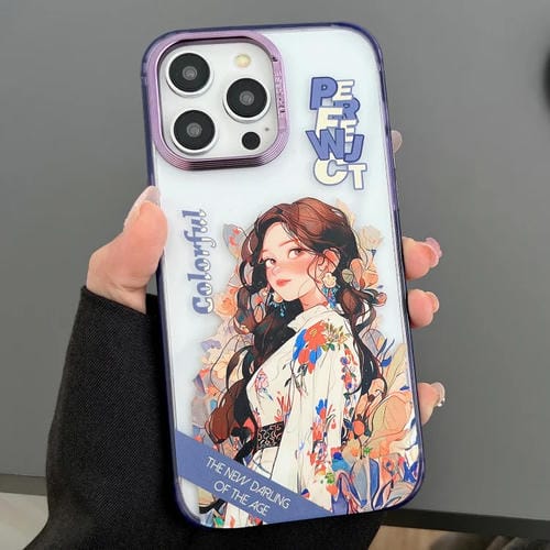 Estuche para Teléfono iPhone 13 Pro Max Dibujos Animados Grabados Niña de Las Flores