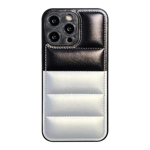 Funda para Teléfono iPhone 13 Pro Max Chaqueta de Plumón con Bloques de Color (Negro Plateado)
