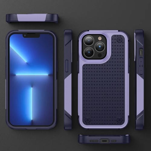 Funda Protectora para iPhone 13 Pro Max PC + TPU a Prueba de Golpes (Púrpura Claro + Azul Zafiro)