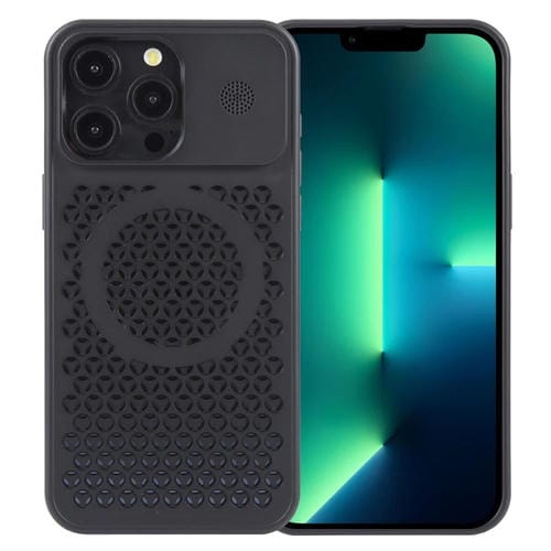 Funda para Teléfono iPhone 13 Pro Max Pure Color Honeycomb Aromatherapy Magsafe (Negro)
