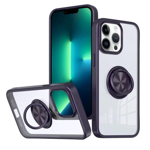 Funda para Teléfono iPhone 13 Pro Max Ring Holder PC Hybrid TPU (Púrpura)