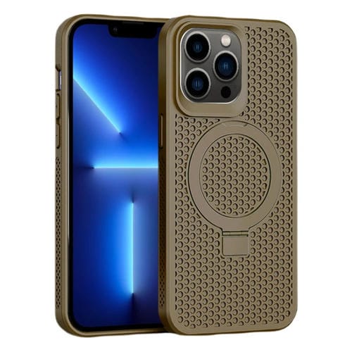 Funda para iPhone 13 Pro Skin Feel PC + TPU Magnética con Enfriamiento y Soporte (Marrón)