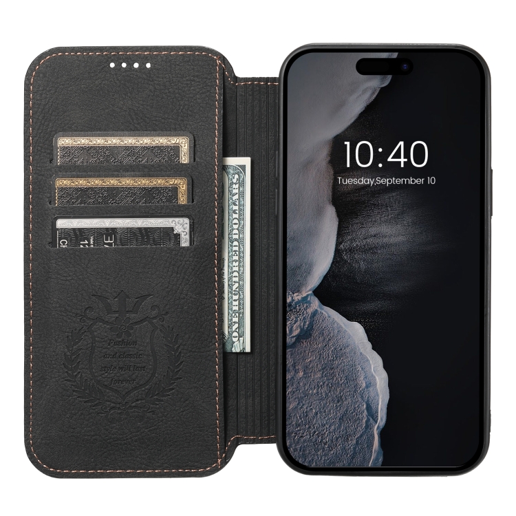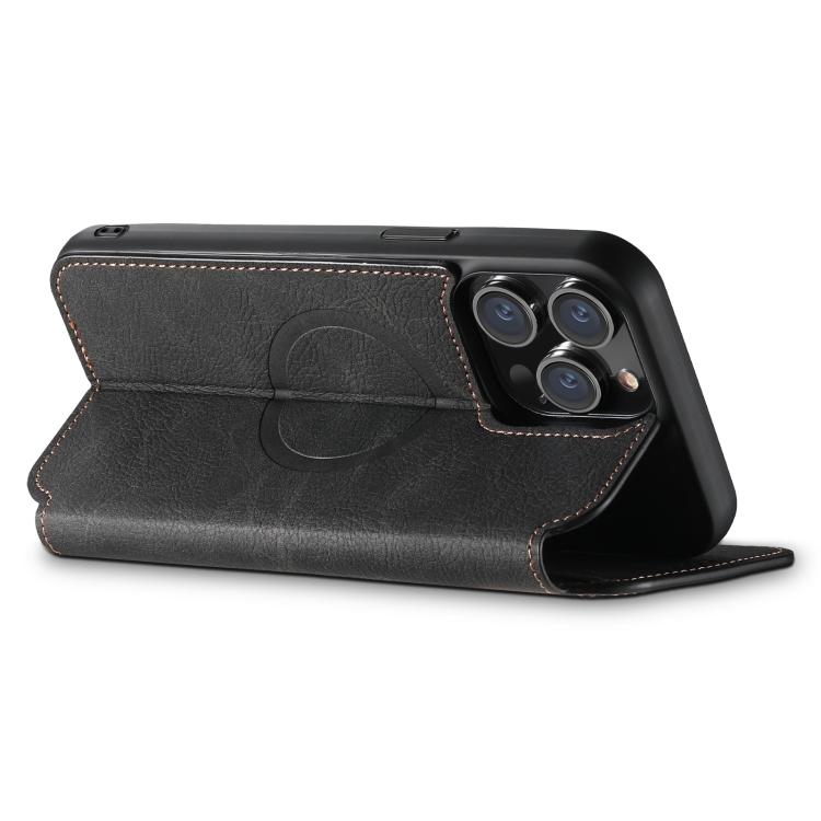 Funda para iPhone 13 Pro Suteni J06 Retro Mate Litchi Texture Leather Magnetic Magsafe (Negro)