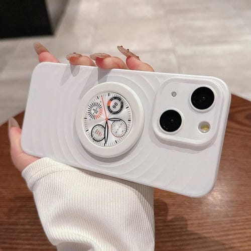 Funda para Teléfono iPhone 13 Wave Texture PC a Prueba de Golpes con Soporte (Blanco)