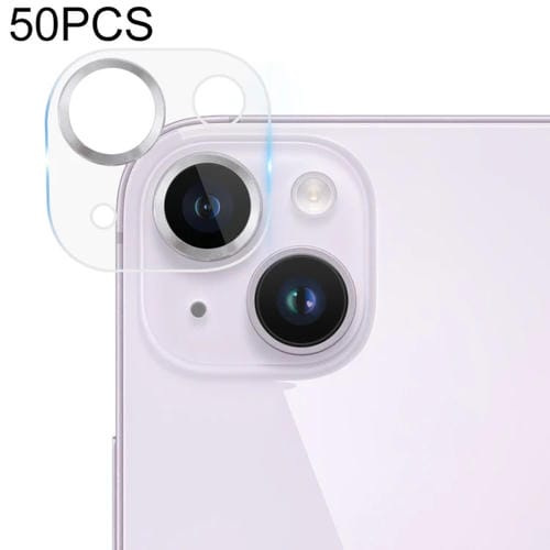 Película de Cámara Trasera para iPhone 14/14 Plus Vidrio Templado Textura Cd (Plata) 50PCs