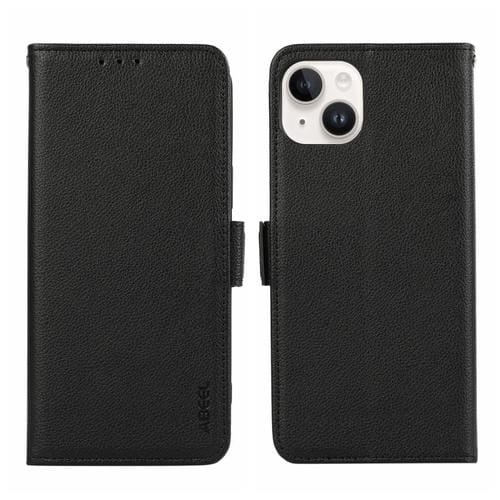 Funda para Teléfono Abeel iPhone 14 Rfid Cuero Patrón Litchi Magnético Lateral (Negro)
