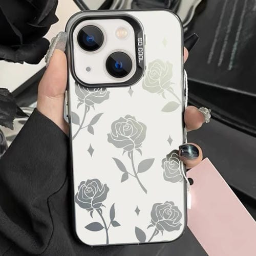 Caja de teléfono híbrida TPU PC para iPhone 14 con pintura plateada (Negro Rosa Hueco)