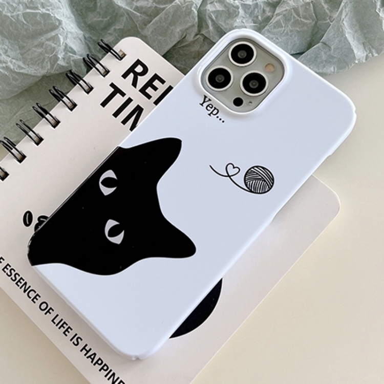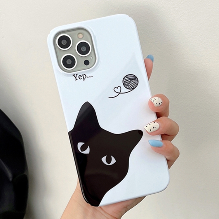 Caja de teléfono PC para iPhone 14 con patrón pintado Gato Negro
