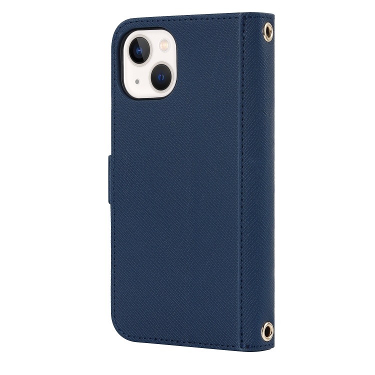 Funda para iPhone 14 Cross Texture Lanyard de Cuero para Teléfono (Azul)