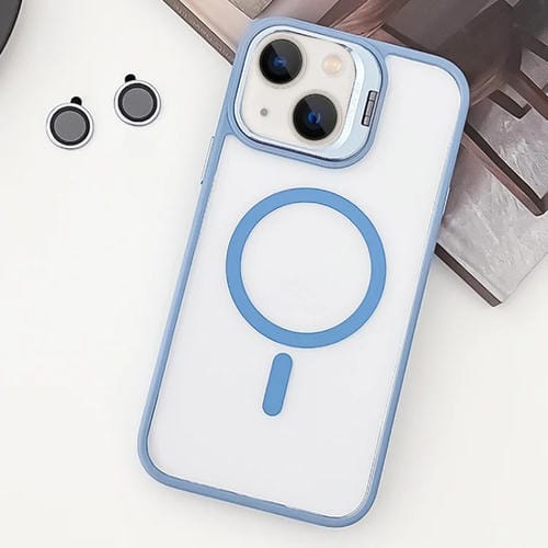 Estuche para Teléfono iPhone 14 TPU Híbrido Acrílico Magsafe con Soporte y Película para Lentes (Azul Claro)