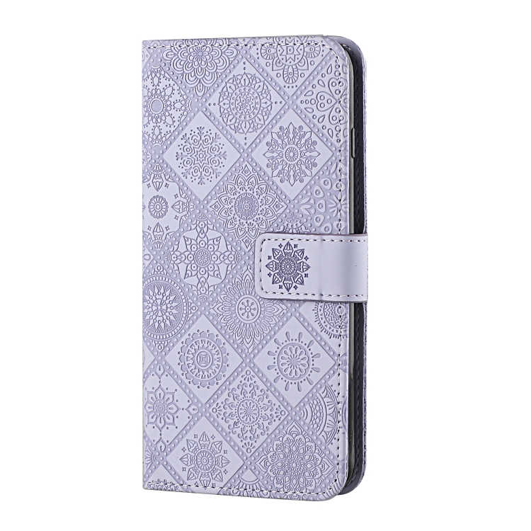 Estuche para teléfono iPhone 14 Cuero Patrón en relieve Estilo étnico (Púrpura)