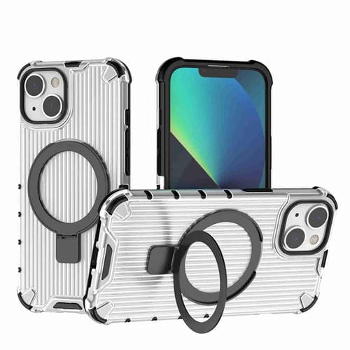 Funda para Teléfono iPhone 14 con Soporte Rejilla a Prueba de Golpes (Transparente)