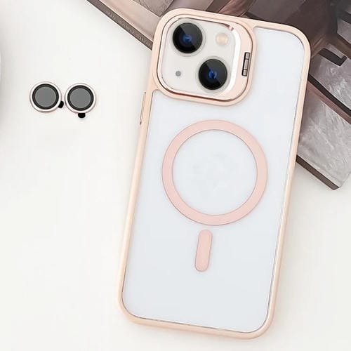 Funda para Teléfono iPhone 14 TPU Híbrido Acrílico Magsafe Soporte Película para Lentes (Rosa)