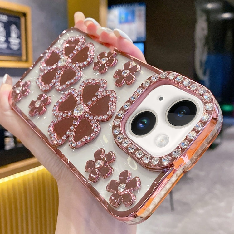 Funda para Teléfono TPU para iPhone 14 con Diamantes y Flores Galvanizadas (Rosa)