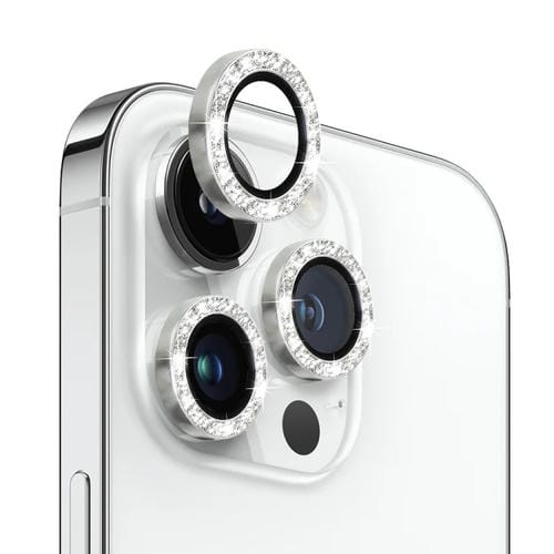 Lente de Cámara Vidrio Templado Northjo para iPhone 14 Pro y 14 Pro Max Anillo de Metal Bling Glitter (Plata)