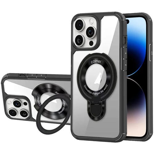 Caja de Teléfono Híbrida Acrílica de TPU con Soporte para iPhone 14 Pro Magsafe (Negro)