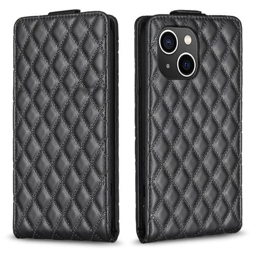 Funda para iPhone 15 Diamond Lattice Vertical Flip Leather Phone Case (Negro)