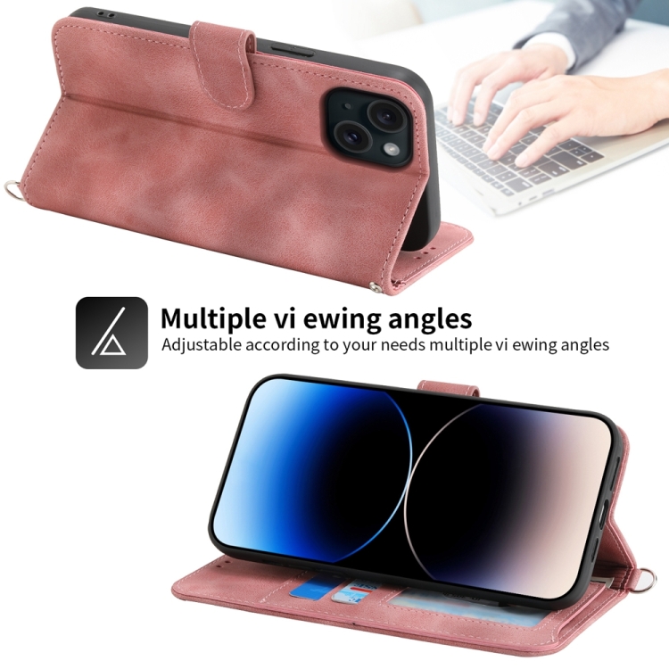 Funda para Teléfono iPhone 15 Cuero con Billetera En Relieve y Flores (Rosa)