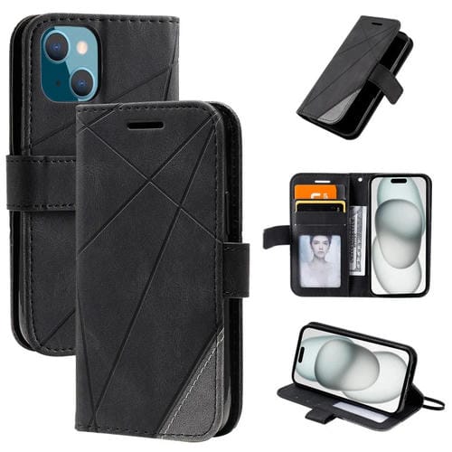 Funda de Cuero para Teléfono iPhone 15 con Empalme y Sensación de Piel (Negro)
