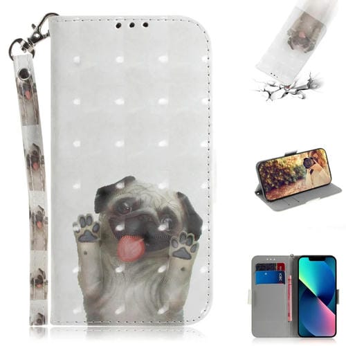 Funda de Teléfono Cuero para iPhone 15 con Tapa Horizontal Color 3D (Pug)
