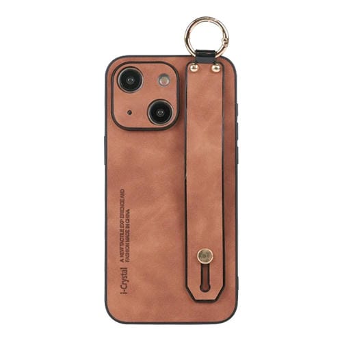 Funda para Teléfono iPhone 15 con Soporte para Pulsera de Piel de Cordero (Caqui)