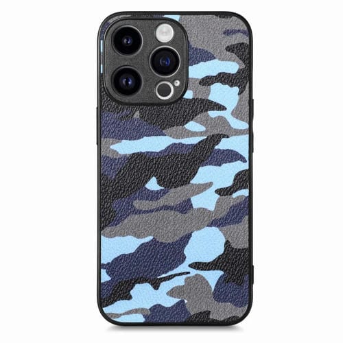 Funda Trasera para iPhone 15 de cuero camuflaje retro (Azul)