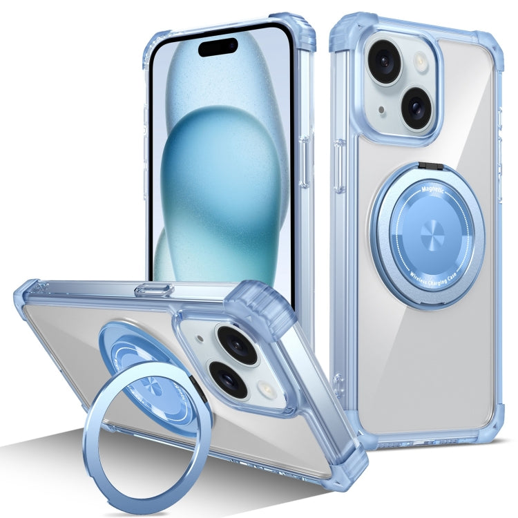 Estuche magnético para iPhone 15 Gold Shield Cd Pattern con soporte giratorio (Azul Transparente)