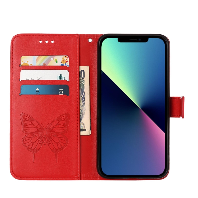 Estuche para Teléfono iPhone 15 Plus Cuero Mariposa En Relieve (Rojo)