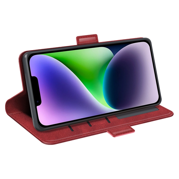 Estuche para Teléfono iPhone 15 Plus Cuero Tapa Horizontal Hebilla Magnética Doble Cara (Rojo)