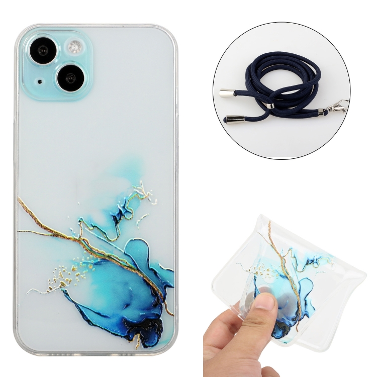 Funda para Teléfono iPhone 15 Plus TPU a Prueba de Golpes con Cuerda (Azul)