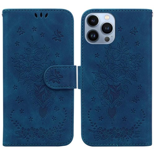 Estuche para Teléfono iPhone 15 Pro Butterfly Rose Cuero en Relieve (Azul)