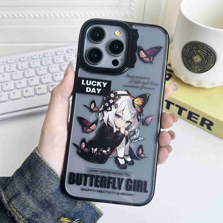 Estuche para Teléfono iPhone 15 Pro Patrón Creativo Círculo Ondulado (Mariposa y Florista)