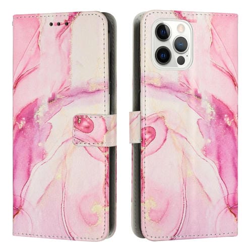 Estuche para Teléfono iPhone 15 Pro Cuero Patrón Mármol Pintado (Oro Rosa)
