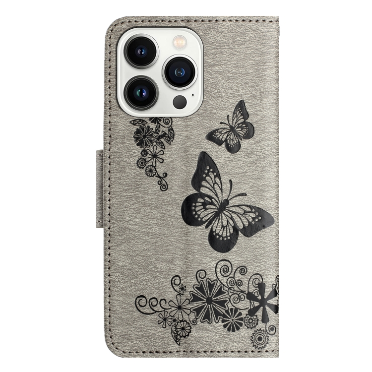 Funda de Teléfono iPhone 15 Pro Cuero con Tapa en Relieve de Mariposa (Gris)