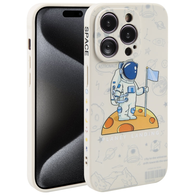 Funda para Teléfono iPhone 15 Pro Borde Recto Silicona Patrón Astronauta (Planet Landing-Blanco)