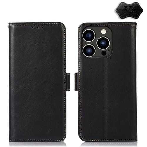 Funda de Teléfono iPhone 15 Pro Max Crazy Horse Cuero de Vaca Capa Superior (Negro)