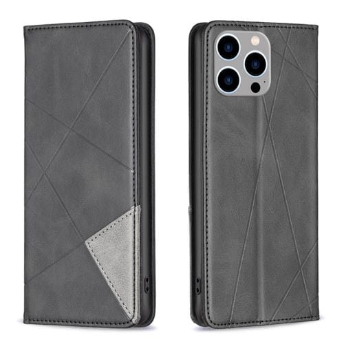 Caja de Teléfono para iPhone 15 Pro Max Rhombus Texture Cuero Magnético (Negro)