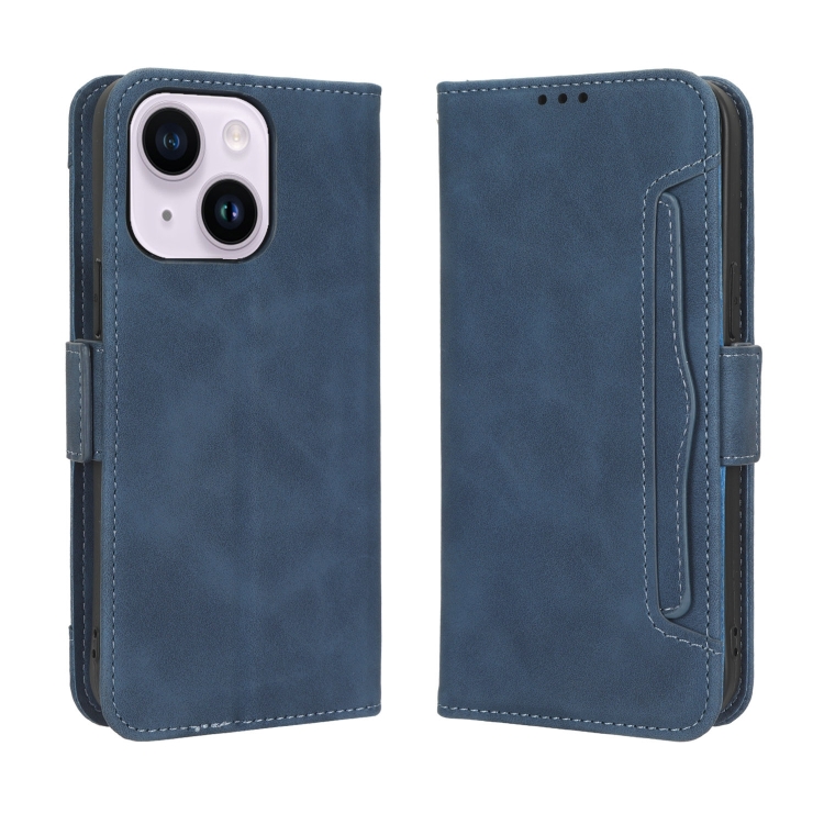 Funda para Teléfono iPhone 15 Pro Max Skin Feel Cuero Textura de Becerro Ranuras para Tarjetas (Azul)