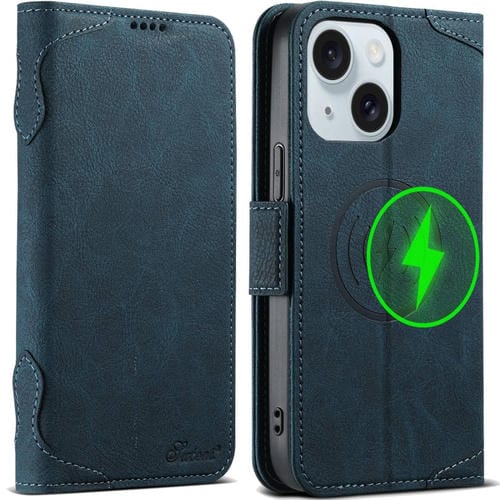 Funda para Teléfono Suteni J07 para iPhone 15 Cuero Magsafe con Tapa Horizontal Multifuncional (Azul)
