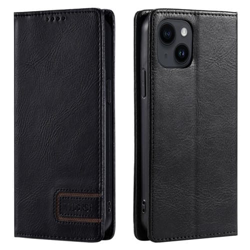Funda de teléfono Ttudrch para iPhone 15 con protección RFID de cuero magnético textura retro (Negro)