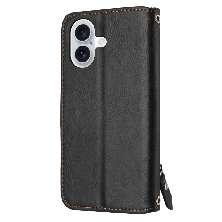 Funda para Teléfono iPhone 16 Cuero con Billetera y Cremallera (Negro)