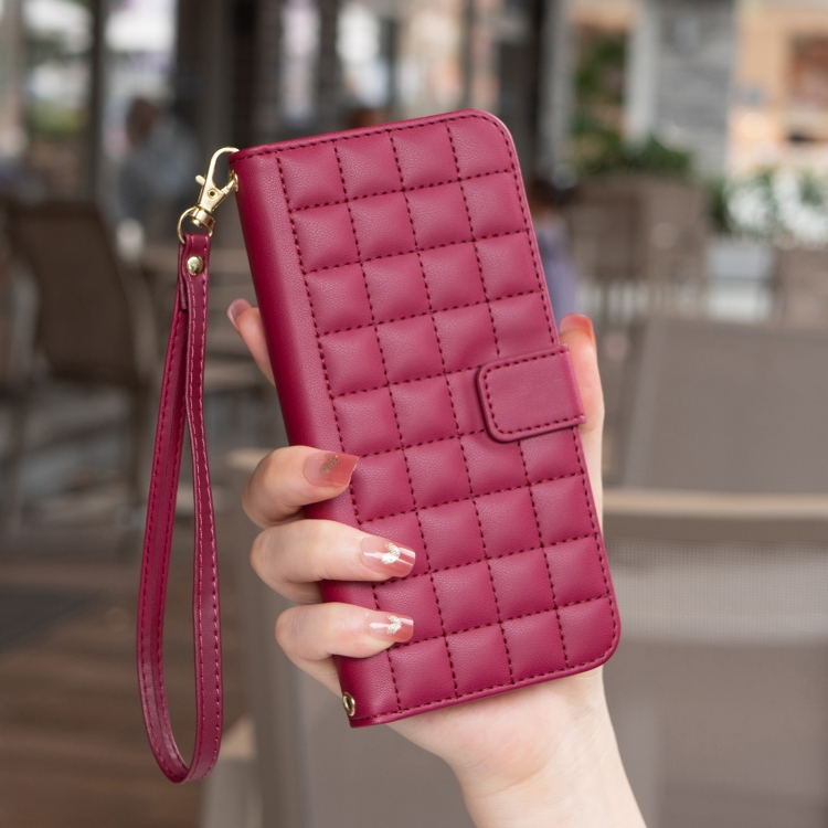 Funda para iPhone 16 Pro Cuero Textura Cuadrada (Rojo)