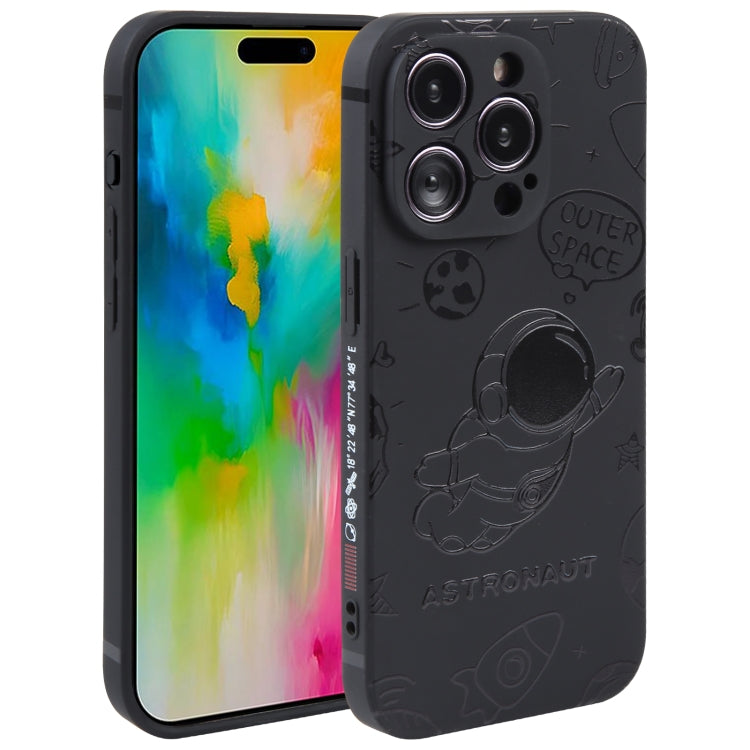 Funda para Teléfono iPhone 16 Pro Silicona Borde Recto Patrón Astronauta (Negro)