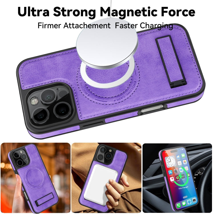 Funda para Teléfono iPhone 16 Pro Magsafe PU con Soporte Multifunción (Taro Morado)