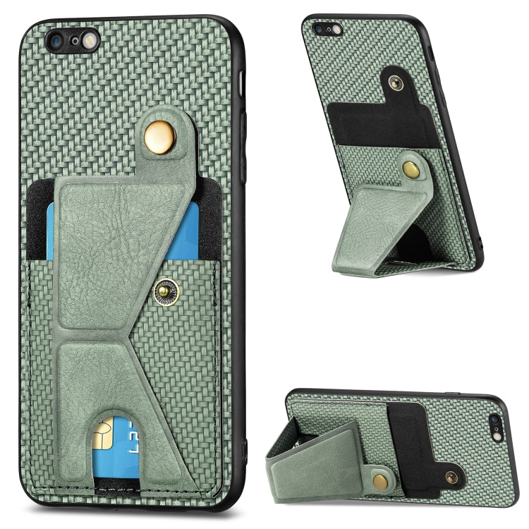 Funda Cartera para iPhone 6 Plus 6S Plus Fibra de Carbono Flip Card con Soporte en Forma de K (Verde)
