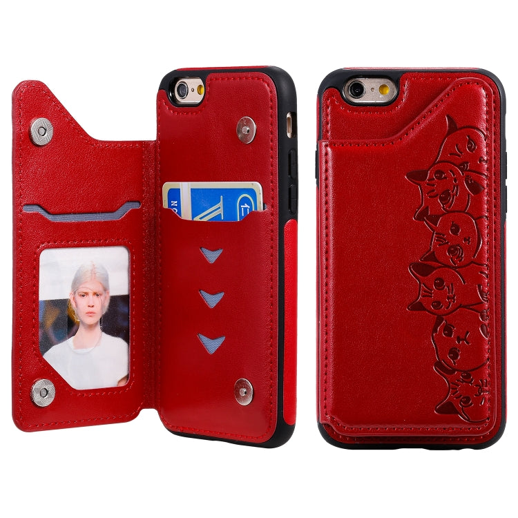 Funda Protectora Six Cats para iPhone 6 con Patrón en Relieve, Soporte, Ranuras para Tarjetas y Marco de Fotos (Rojo)